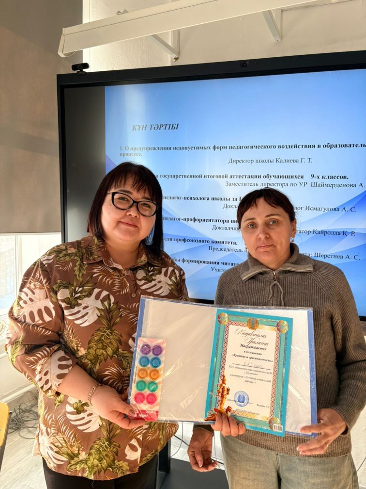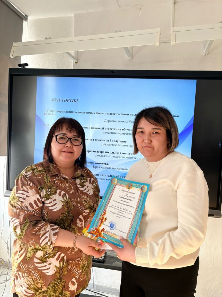 Директордың қатысуымен өткізілген кеңесте мектеп өміріне белсене араласып, оқу кабинеттерін Жаңа жыл мерекесіне ерекше сәнмен безендіруге атсалысқан ұстаздарымыз марапатталды