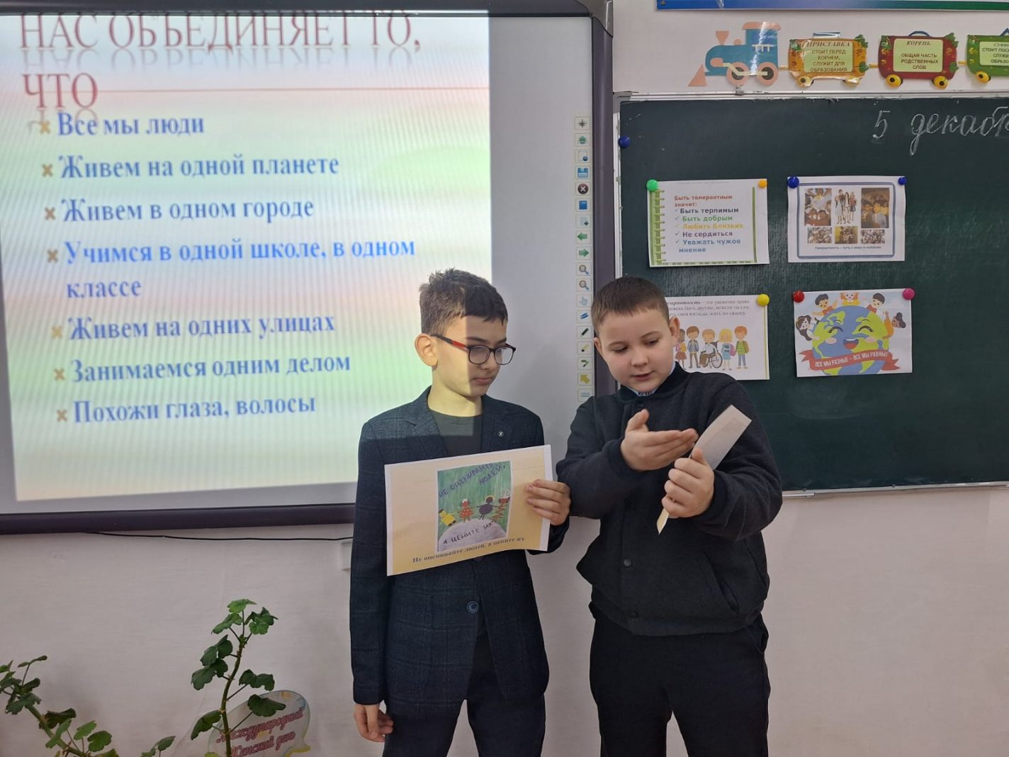 Сабақ барысында оқушылар достық, құрмет және бірін-бірі қабылдау туралы әңгімелесті. Әр адамның ерекшелігін бағалауды, өзгелермен тіл табысуды және ортақ құндылықтарды көруге үйренді. Ойындар мен талқылаулар арқылы балалар маңызды қорытынды жасады: әртүрлі болу — ерекше болу, және әрбір бала қолдауға да, құрметке де лайық.