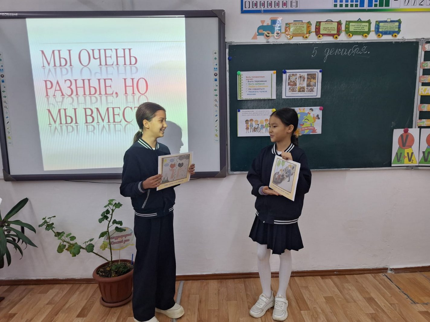 2025 жылғы 4 желтоқсанда 4 «А» сыныбында «Біз әртүрліміз – бірақ теңбіз» тақырыбында тәрбие сағаты өтті.